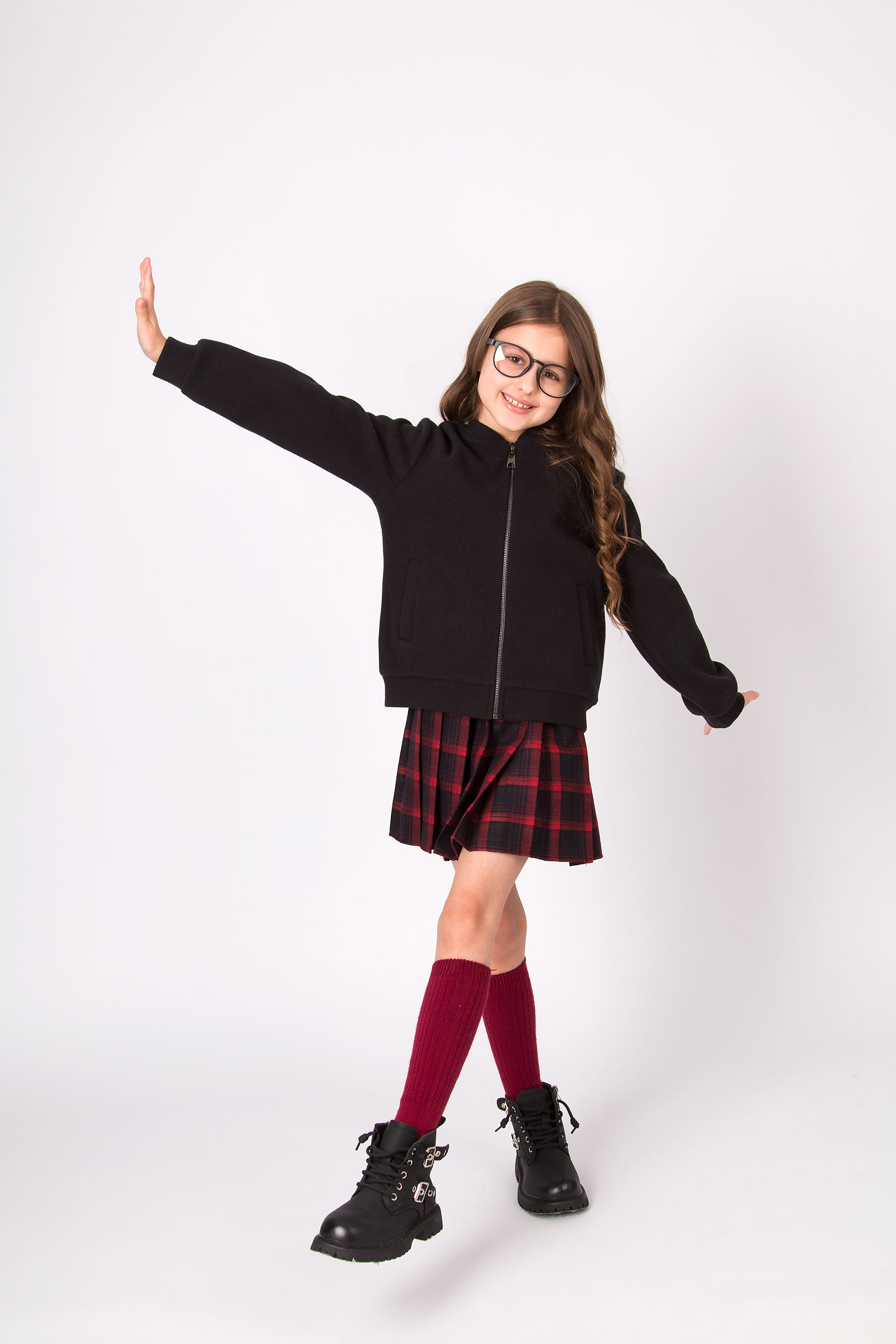 Жакет із трикотажної в’язаною тканиною на блискавці з кишенями стане незамінною у повсякденному гардеробі: ідеальний варіант для школи, прогулянок та активних буднів. Стильний, практичний і універсальний — саме той жакет, який діти носять із задоволенням щодня.