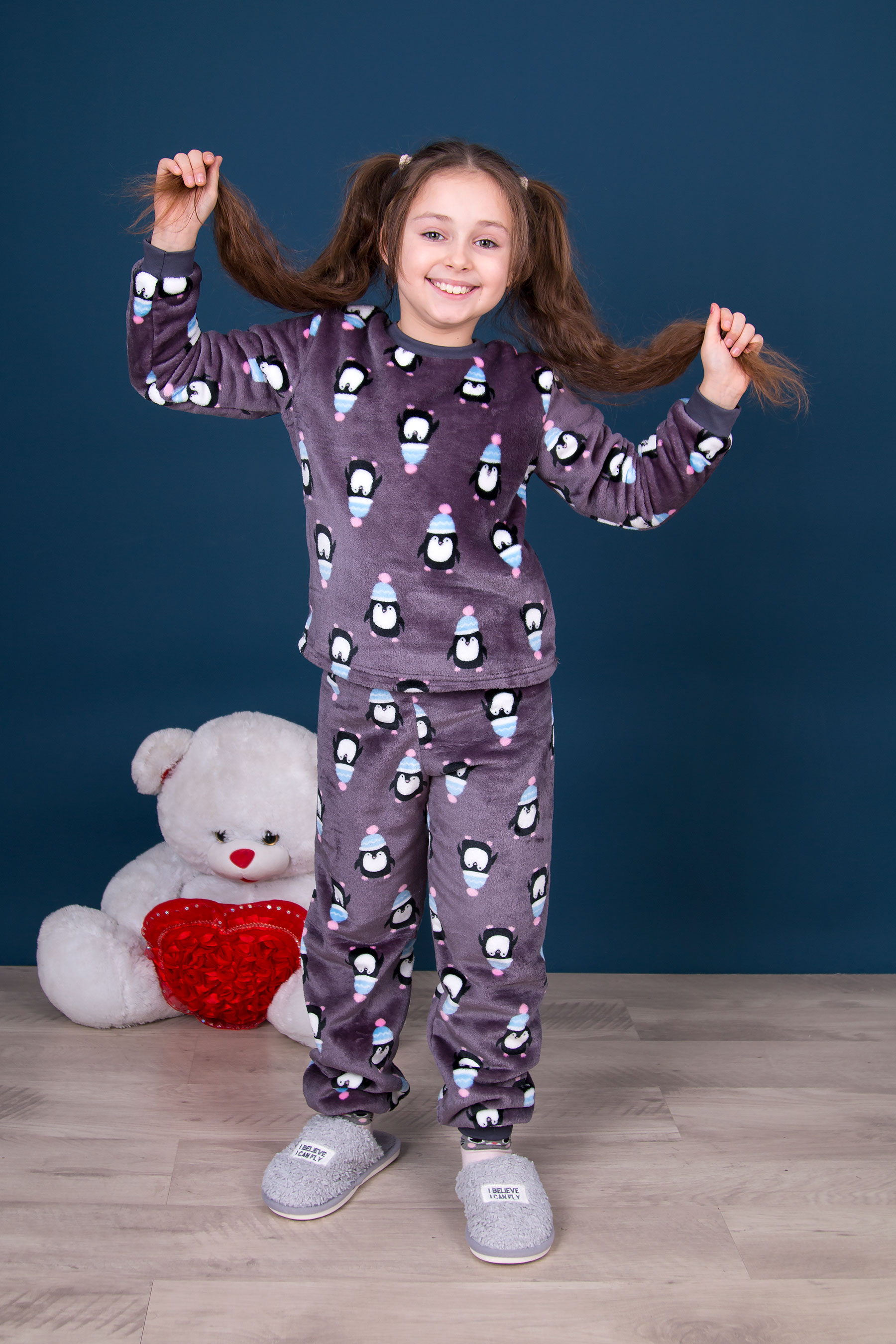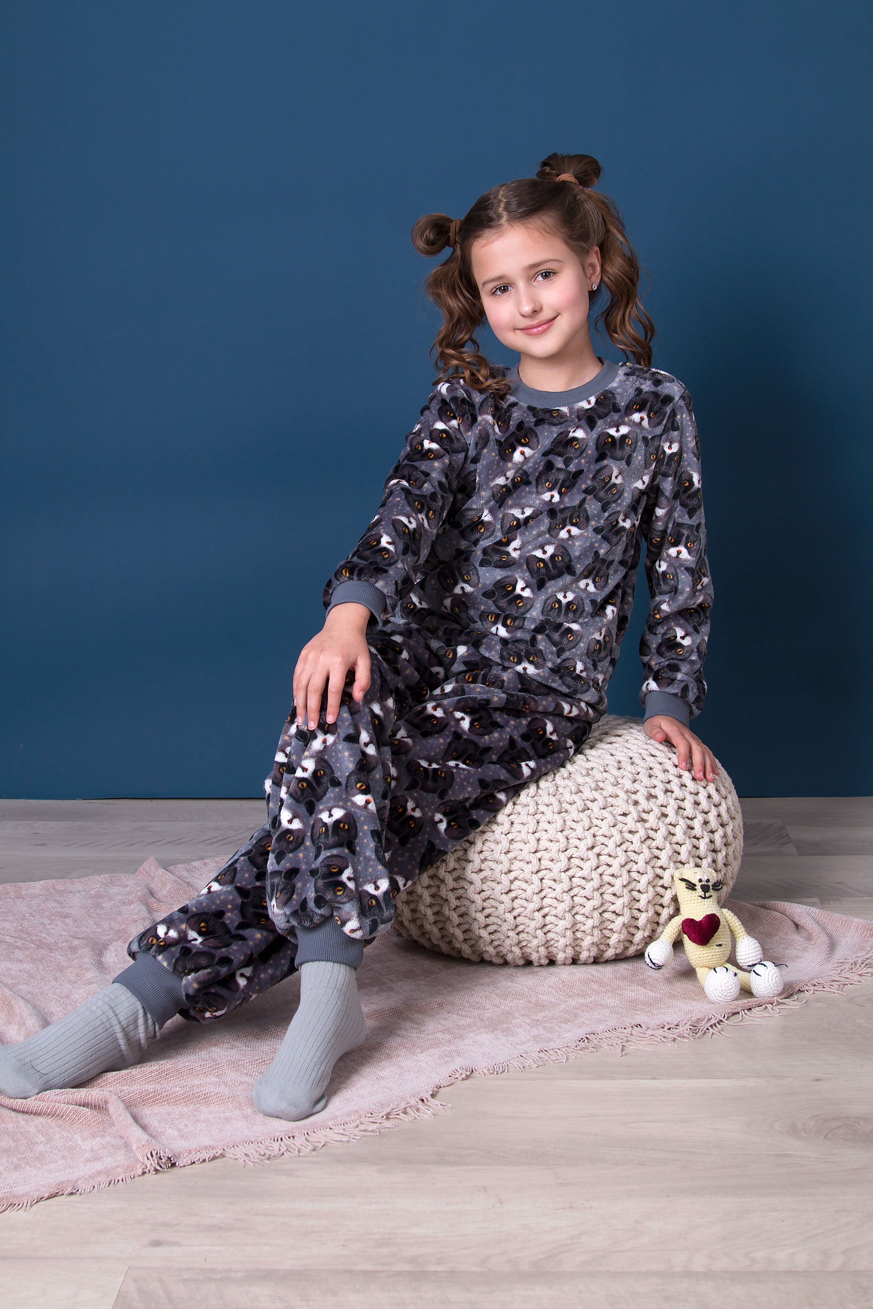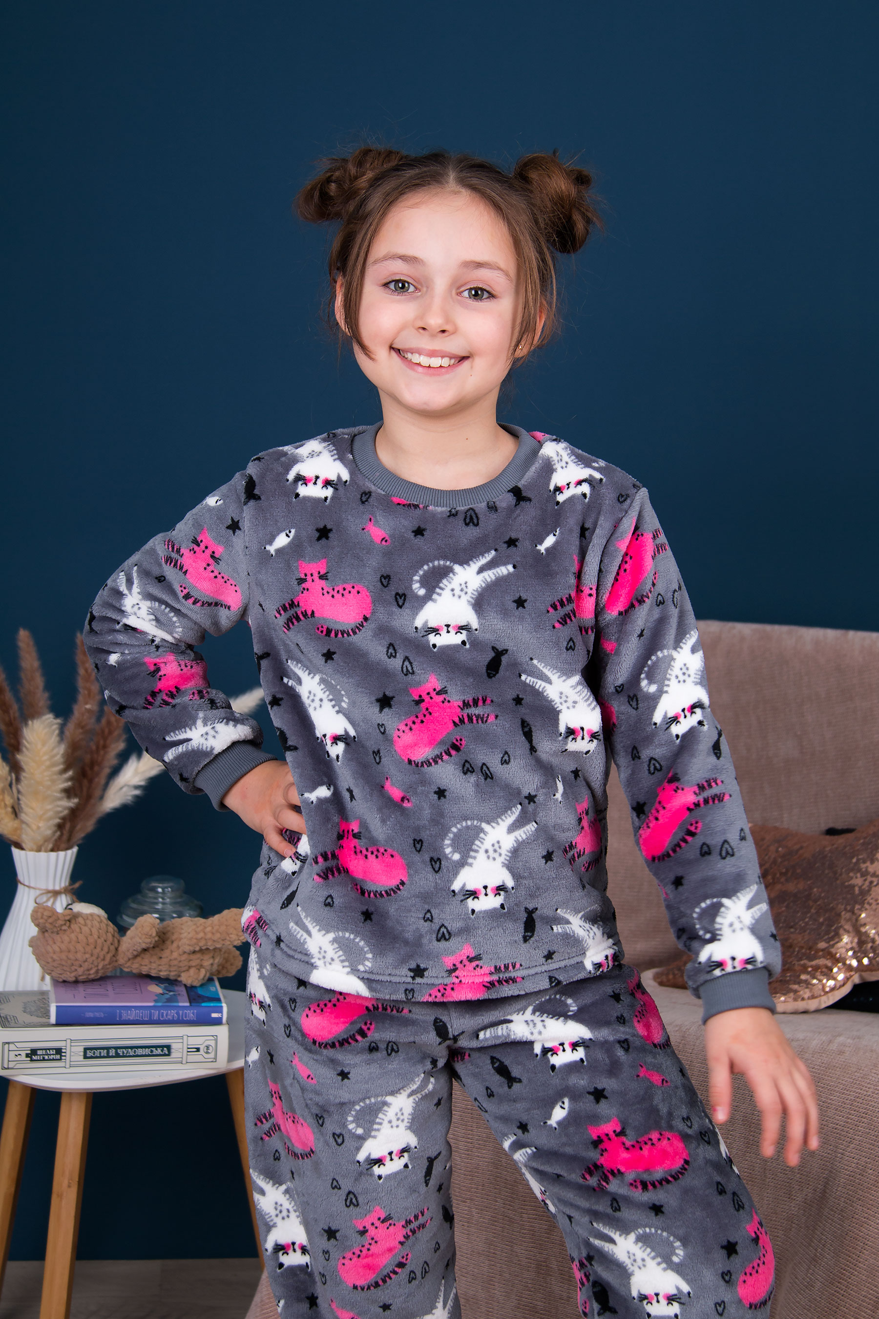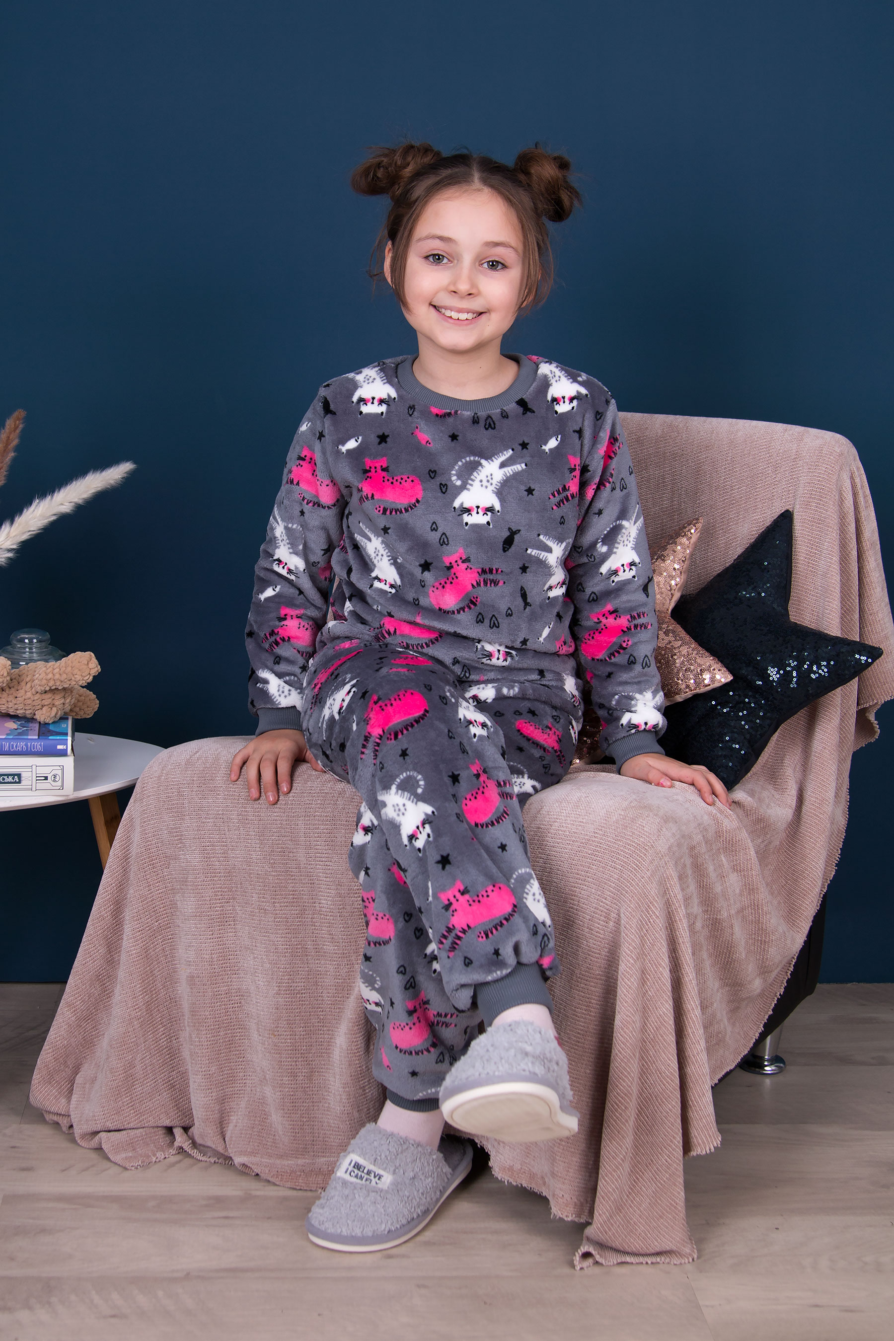 М’яка та приємна на дотик піжама з теплого флісу. Світшот та штани із манжетами на рукавах і понизу, що зручно сидять і не сповзають. Стильний та зручний комплект для щоденного домашнього затишку.