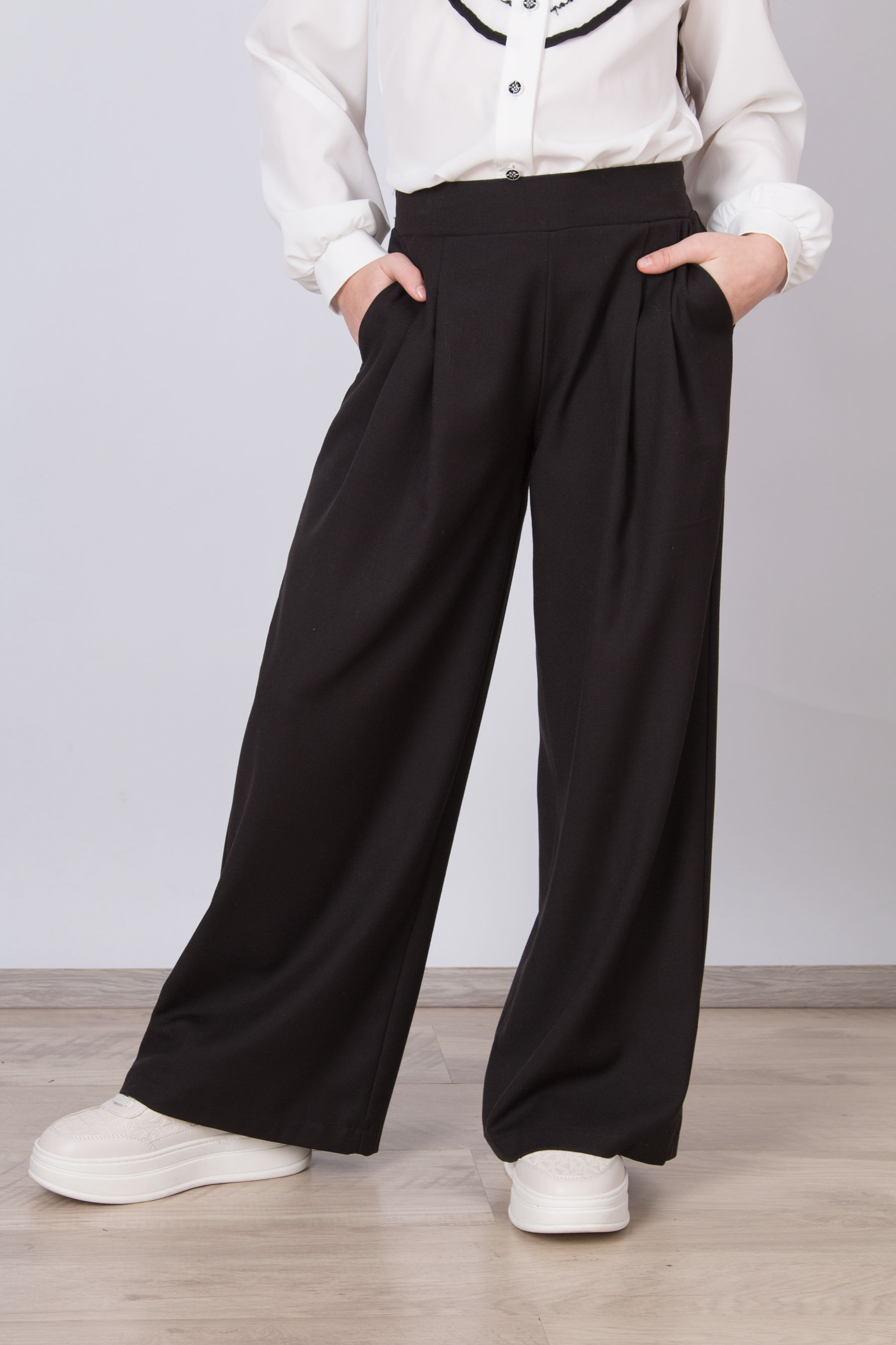 Стильні штани зі складками та широкими штанинами. Текстильна тканина, зручна посадка, базова модель для школи й повсякденних образів.