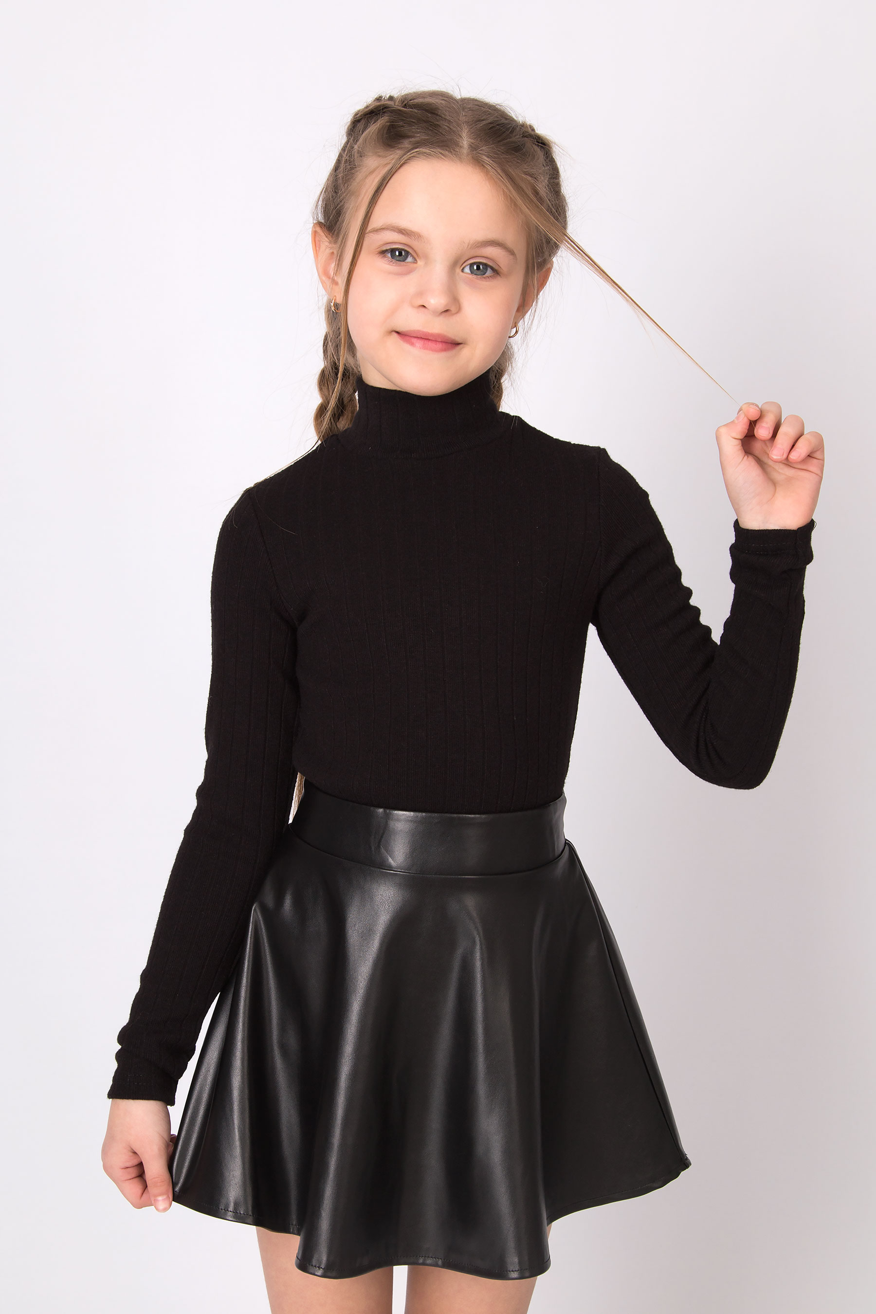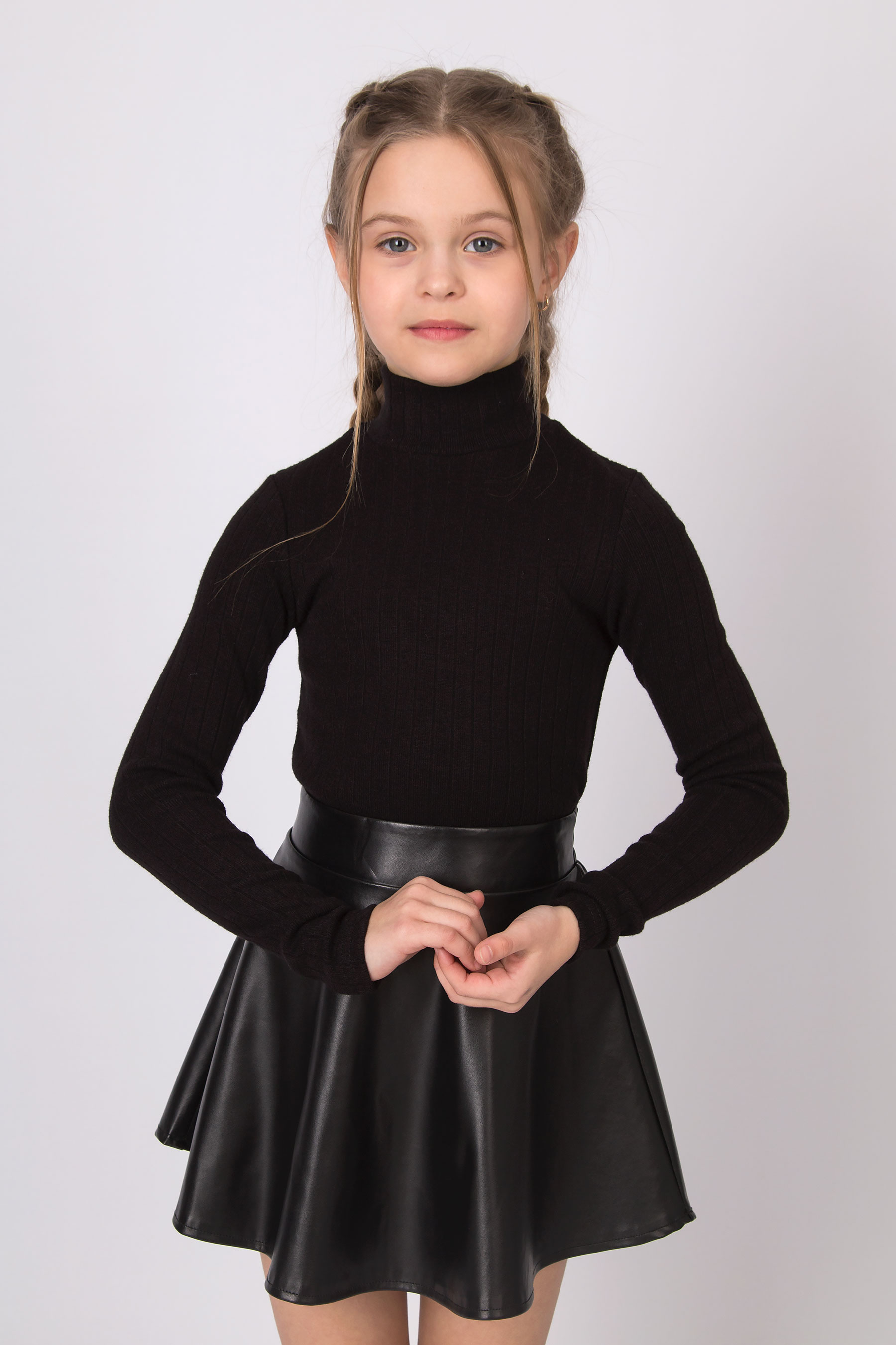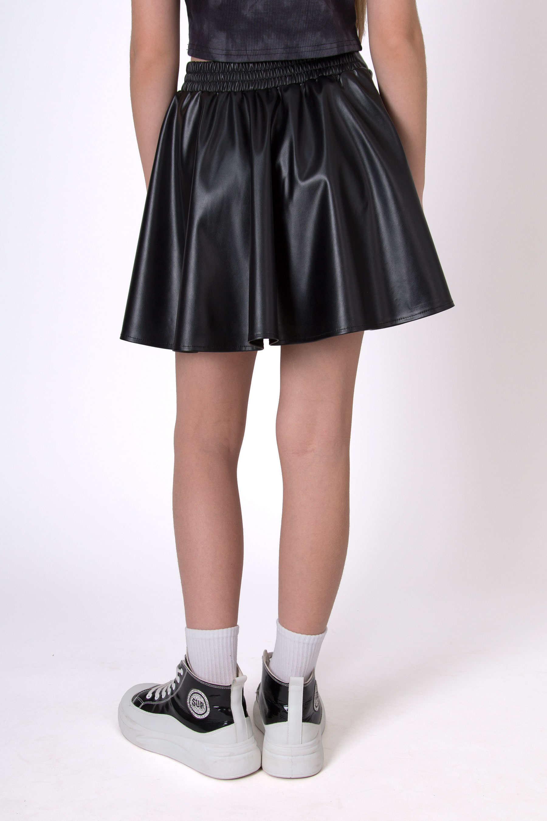 Спідниця з екошкіри у фасоні «сонце» — модний акцент у гардеробі. Матеріал має легкий блиск і гладку фактуру, що додає виробу виразності. Позаду еластичний пояс, який забезпечує зручну посадку. Спідниця виглядає стильно та підходить як для повсякденних, так і для особливих виходів.