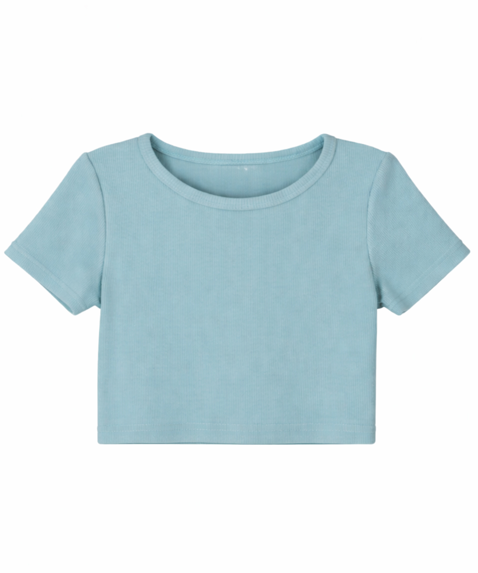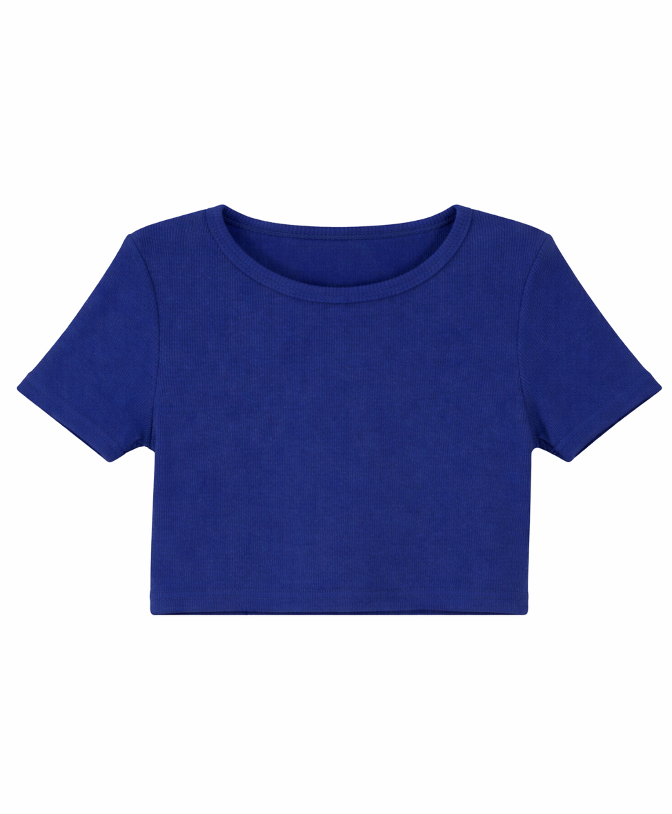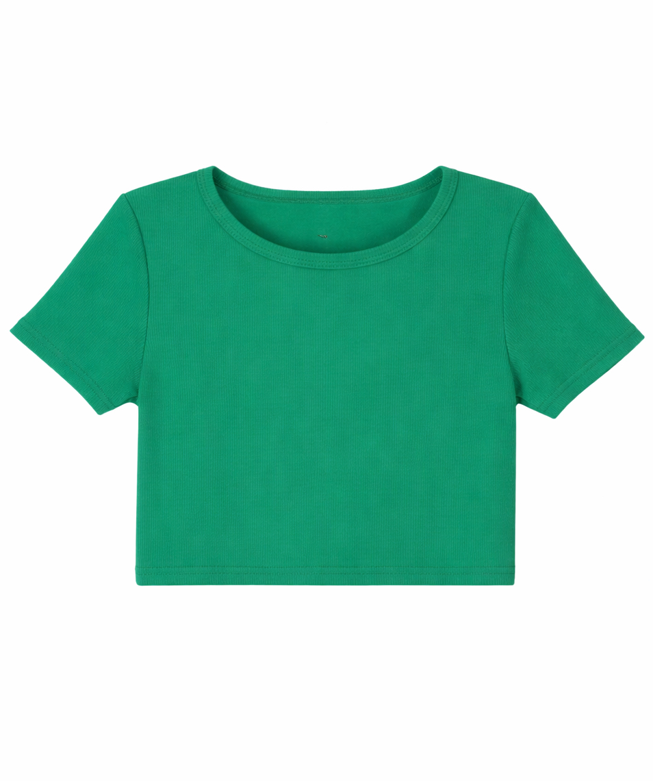Укорочений кроп-топ з фактурного трикотажу рубчик. Базовий фасон дозволяє комбінувати модель з різним одягом — від повсякденного до спортивного стилю.