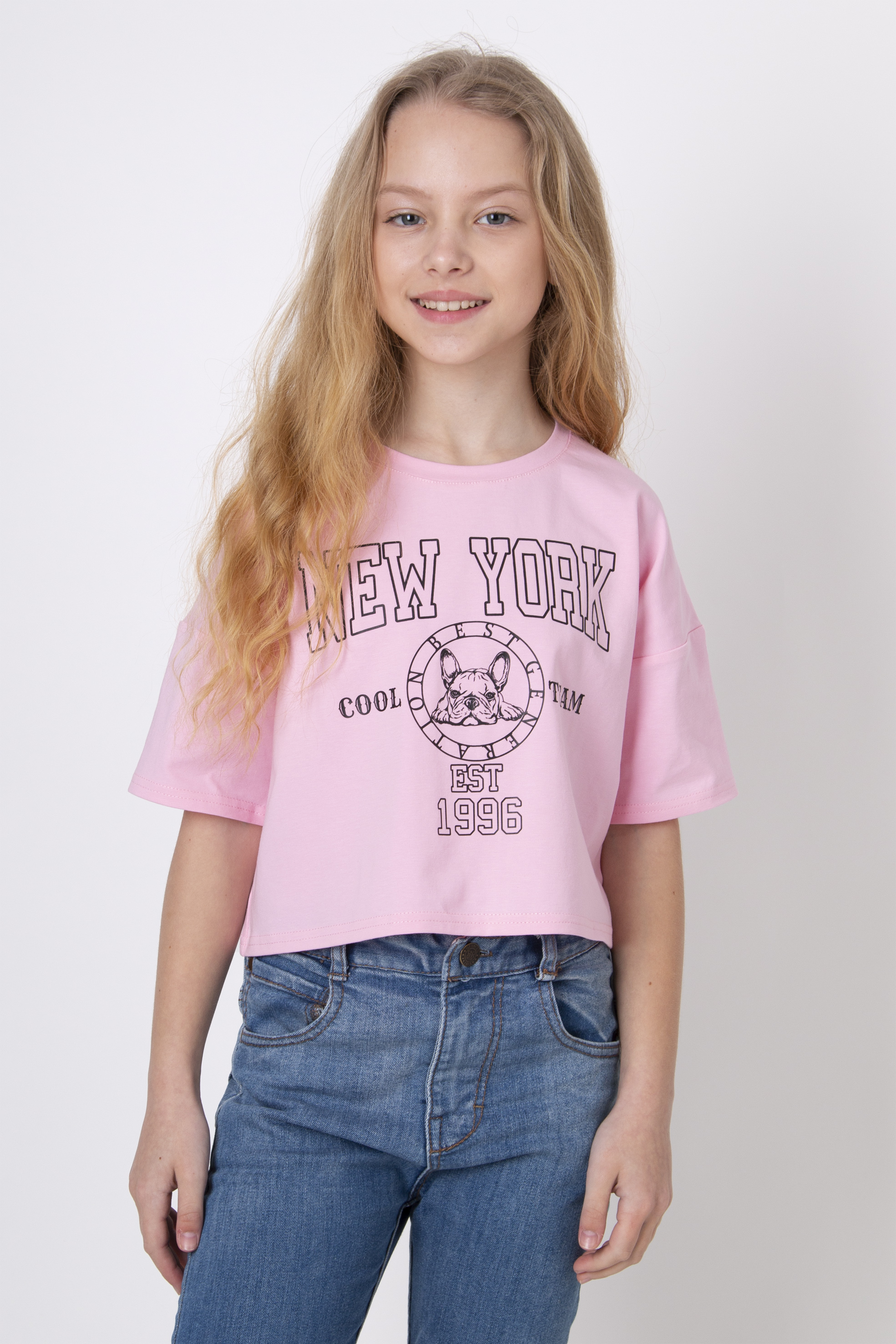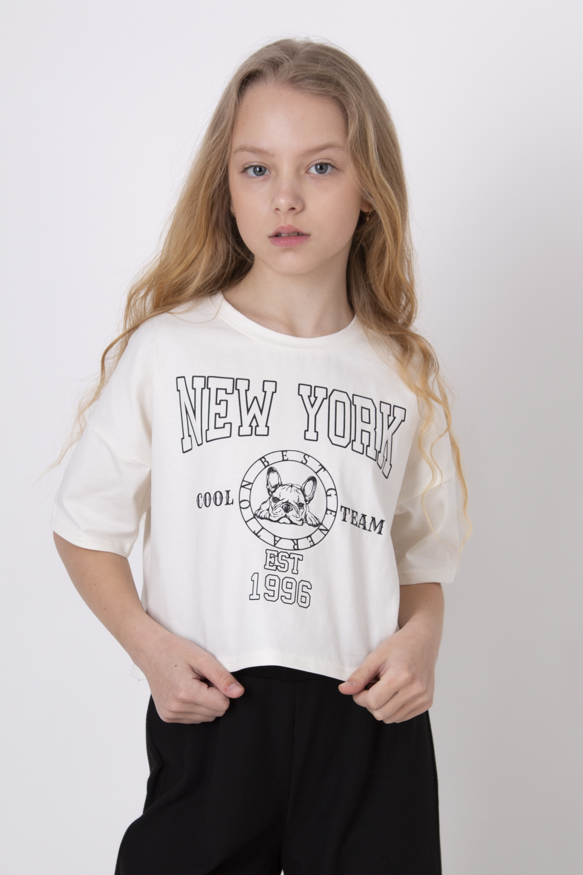 Футболка з трикотажу кулір з короткими рукавами та круглою горловиною. Модель доповнена яскравим принтом із персонажами та написом Best friends на передній частині.