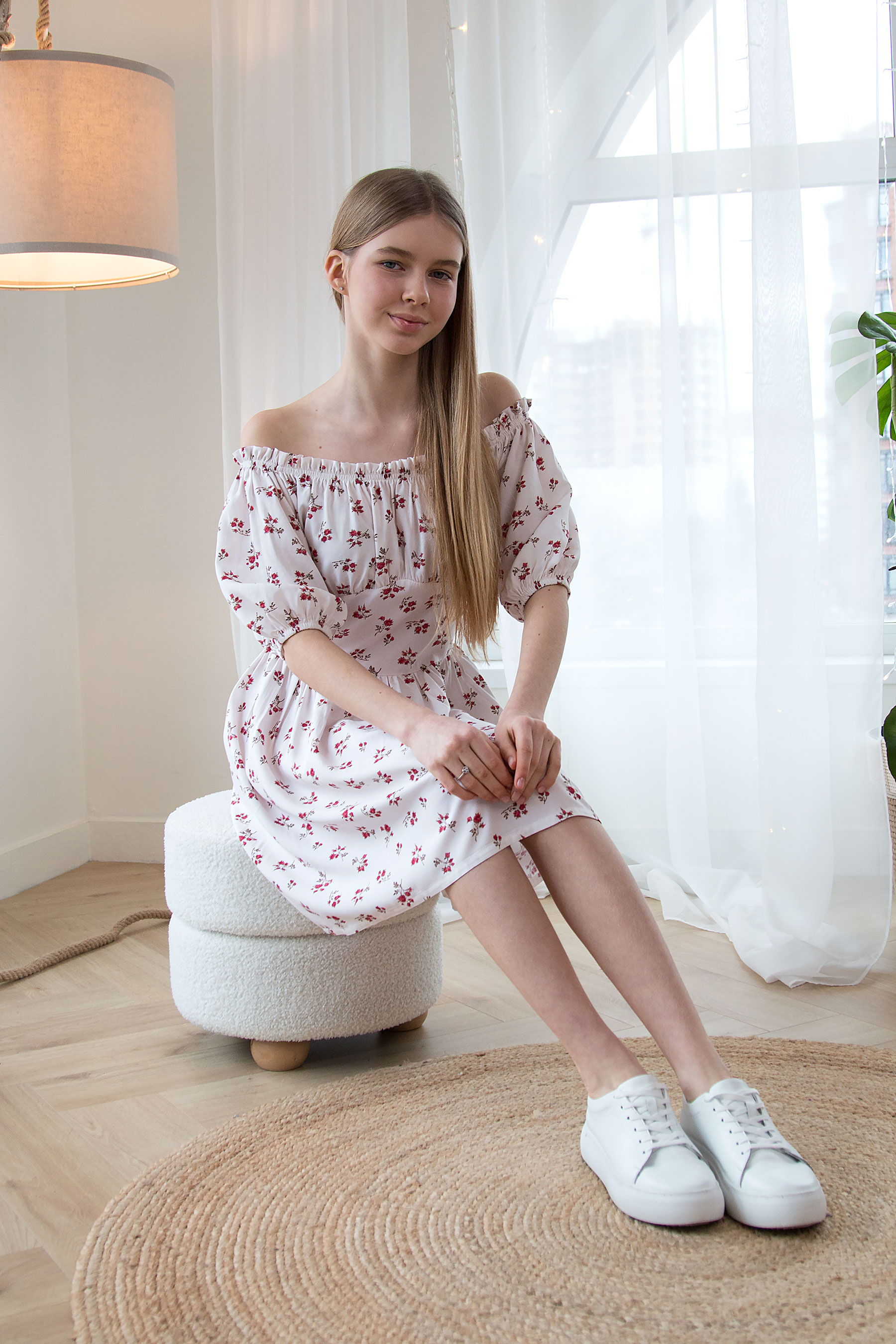 Легка сукня зі штапелю додає образу романтичності. Модель виконана з еластичною лінією плечей, зручним рукавом 3/4, м’якою спідницею та ніжним квітковим принтом. Сукня забезпечує комфорт і свободу рухів.