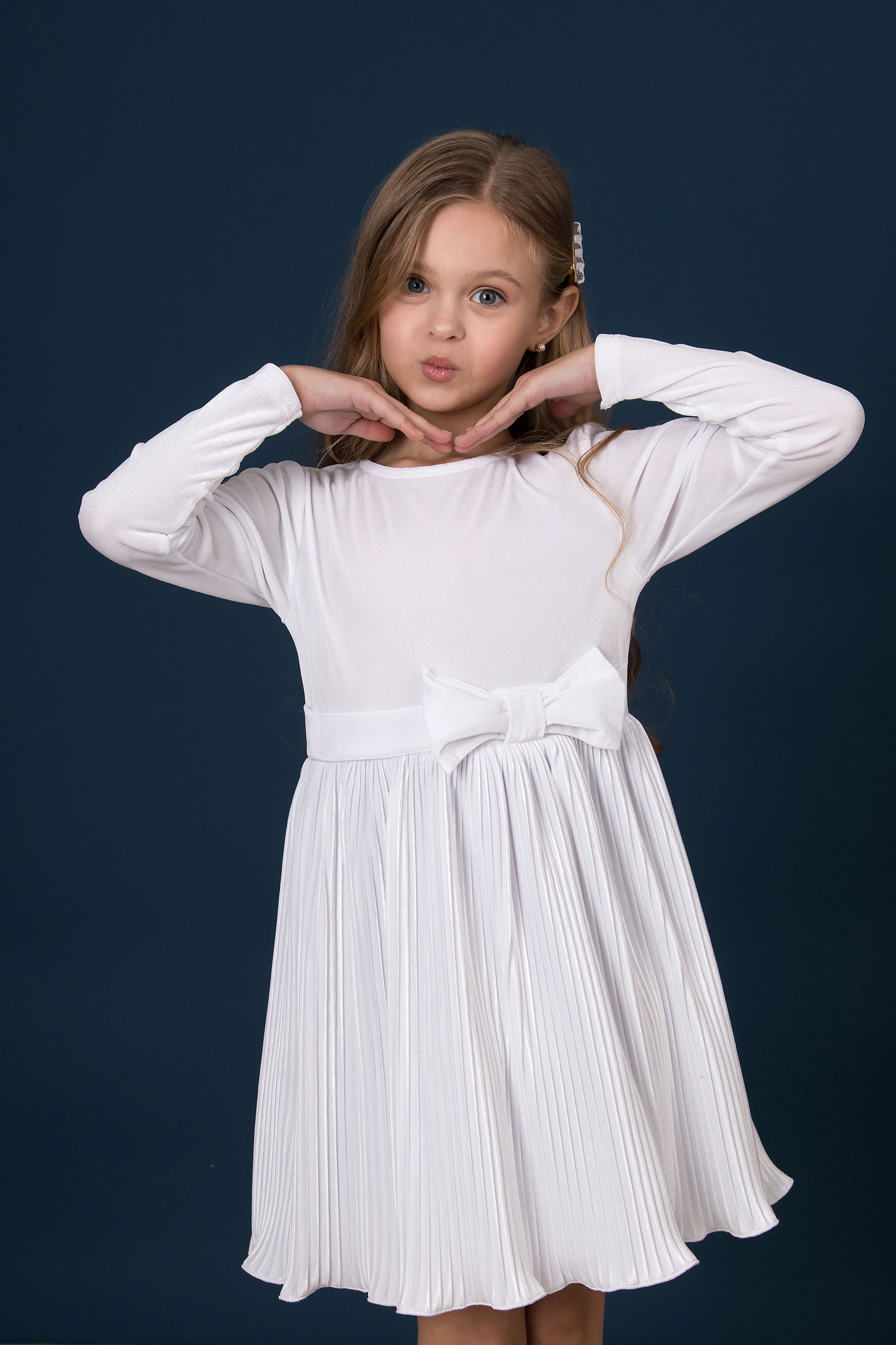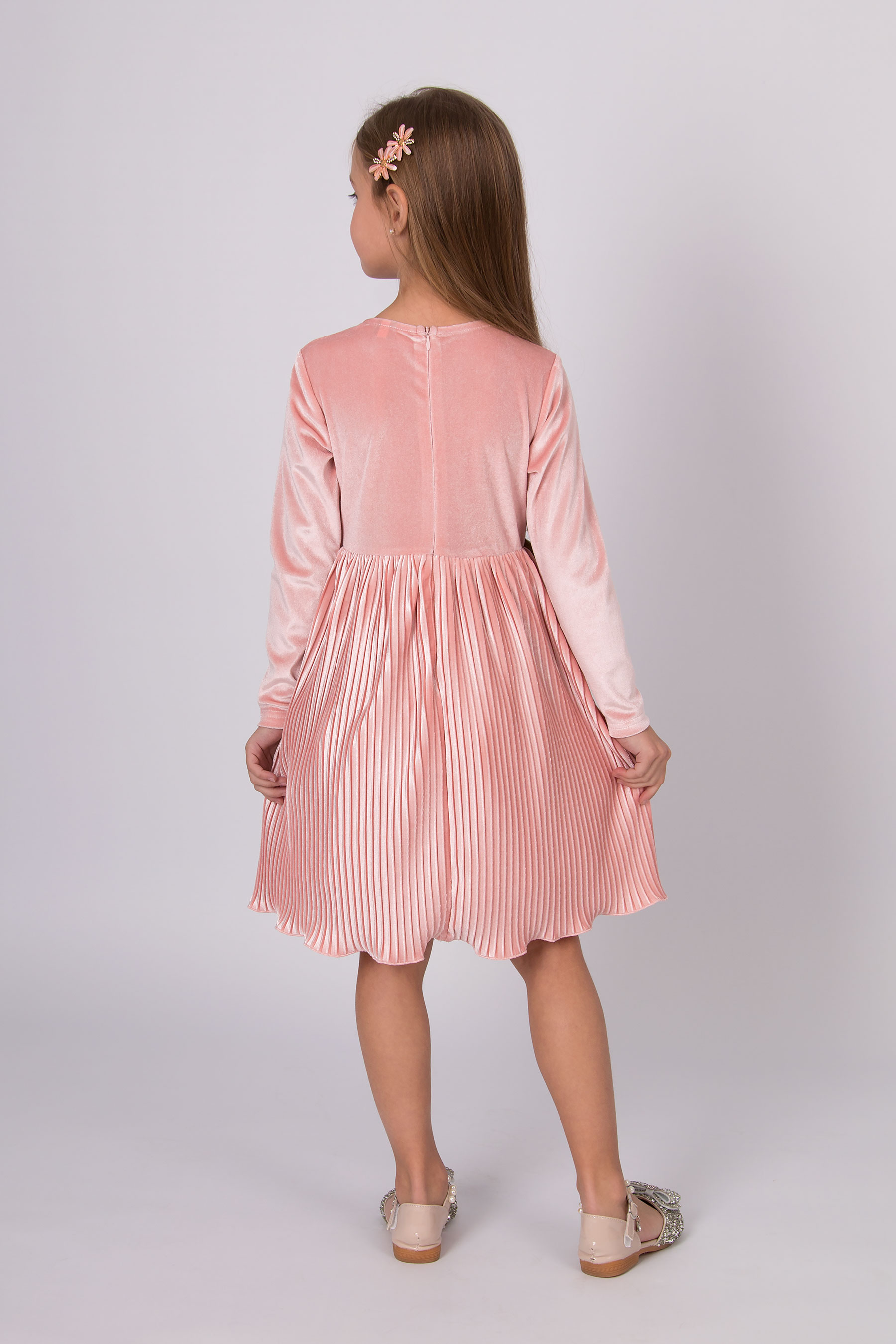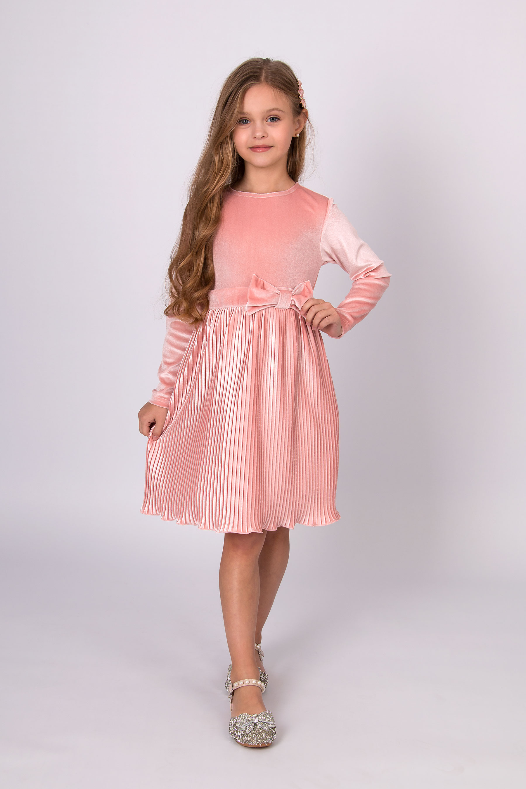 Велюрова сукня з плісированим низом і акцентним бантиком. Виглядає дуже ніжно та охайно. Прекрасний вибір для будь-якої урочистої події.