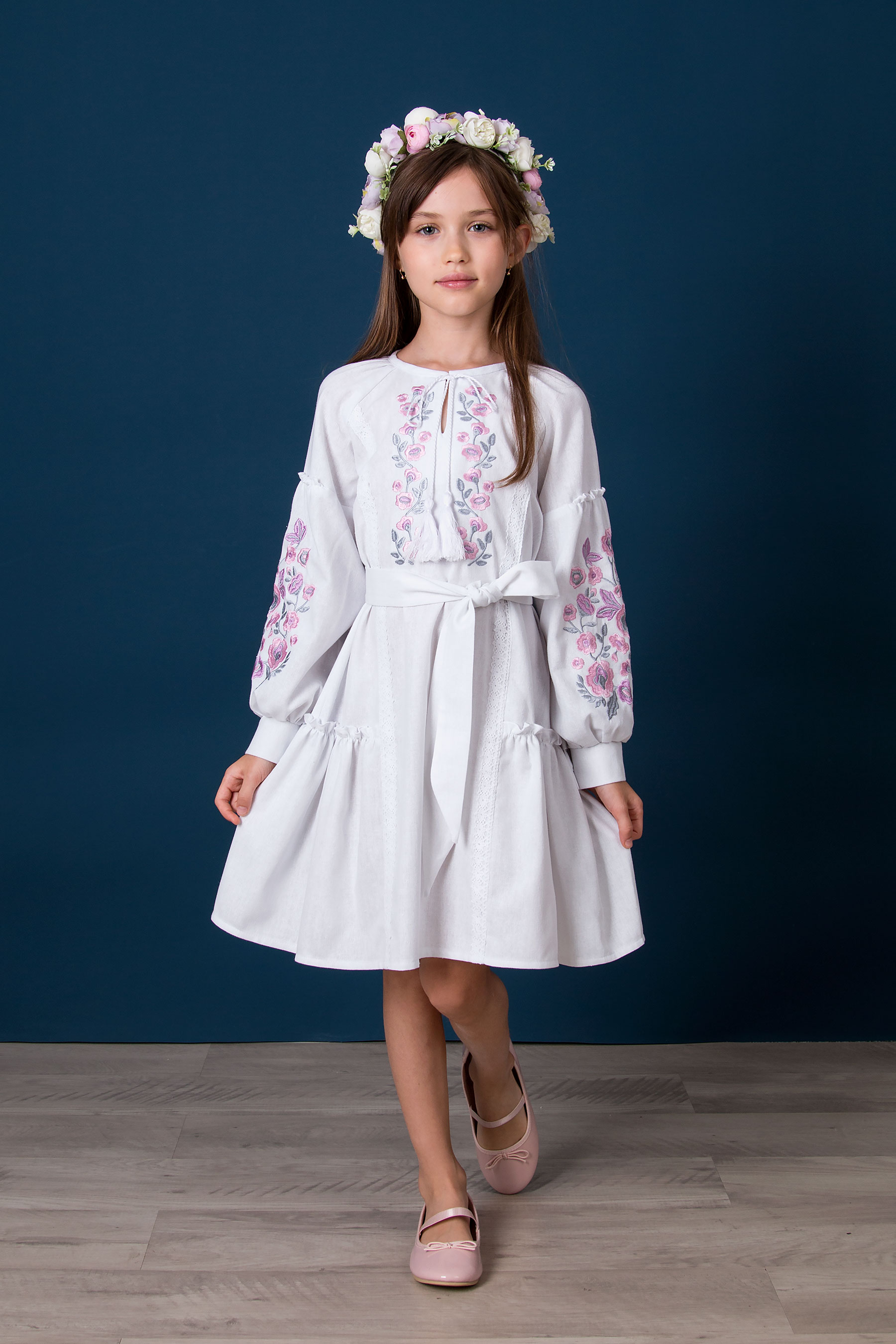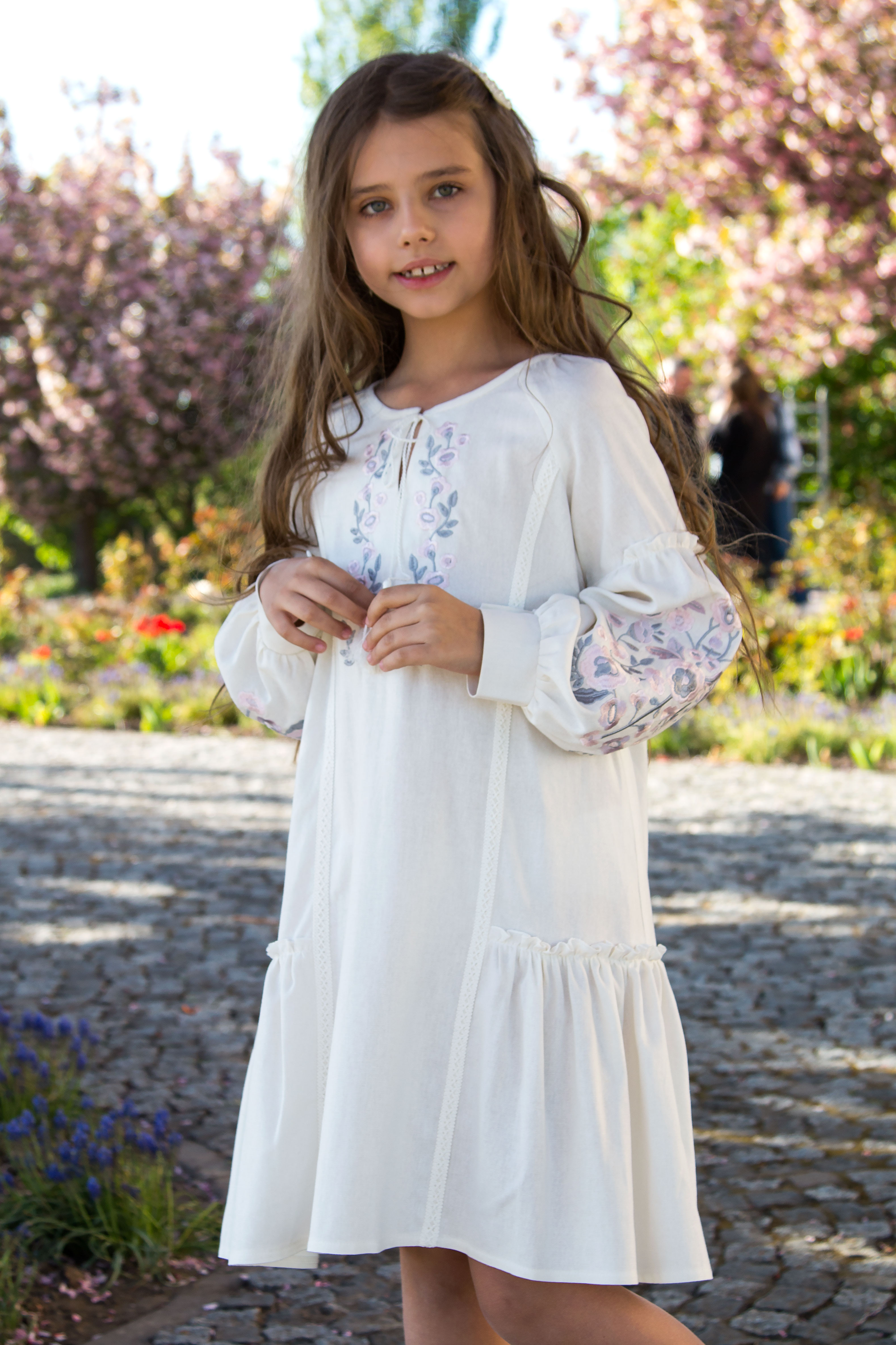 Сукня-вишиванка з льону у вільному крої з поясом, що м’яко підкреслює талію. Горловина має зав’язки з китицями, а рукави прикрашені акуратною вишивкою з етномотивами. Легкий крій і продуманий дизайн створюють ніжний, гармонійний образ для будь-якої події. Це поєднання української традиції та сучасного комфорту — сукня, у якій відчувається стиль і турбота про деталі.