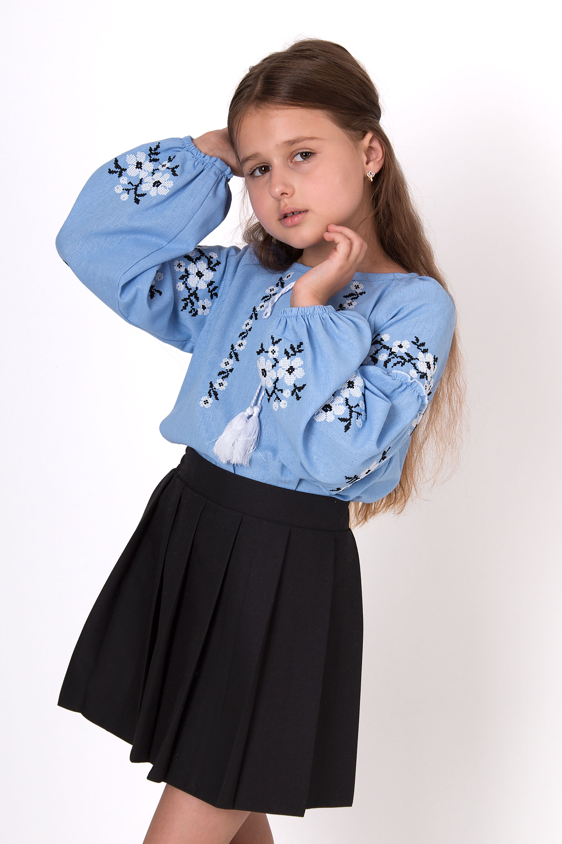 Блуза з льону з вишивкою та китицями на зав’язках. Рукави на резинці додають легкості силуету. Стильна модель, що пасує як для повсякденних, так і для святкових образів. Поєднання культури та щоденного комфорту.