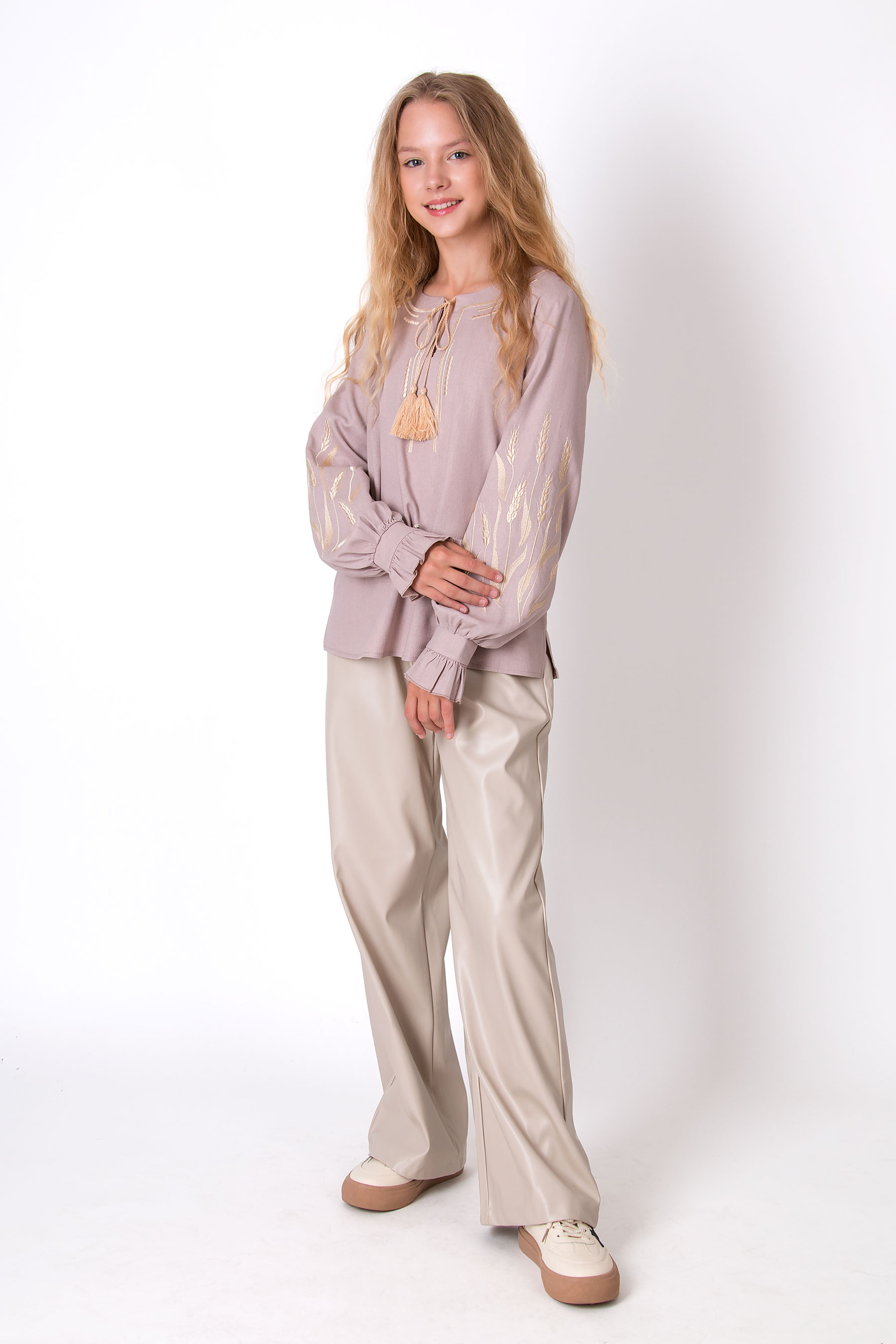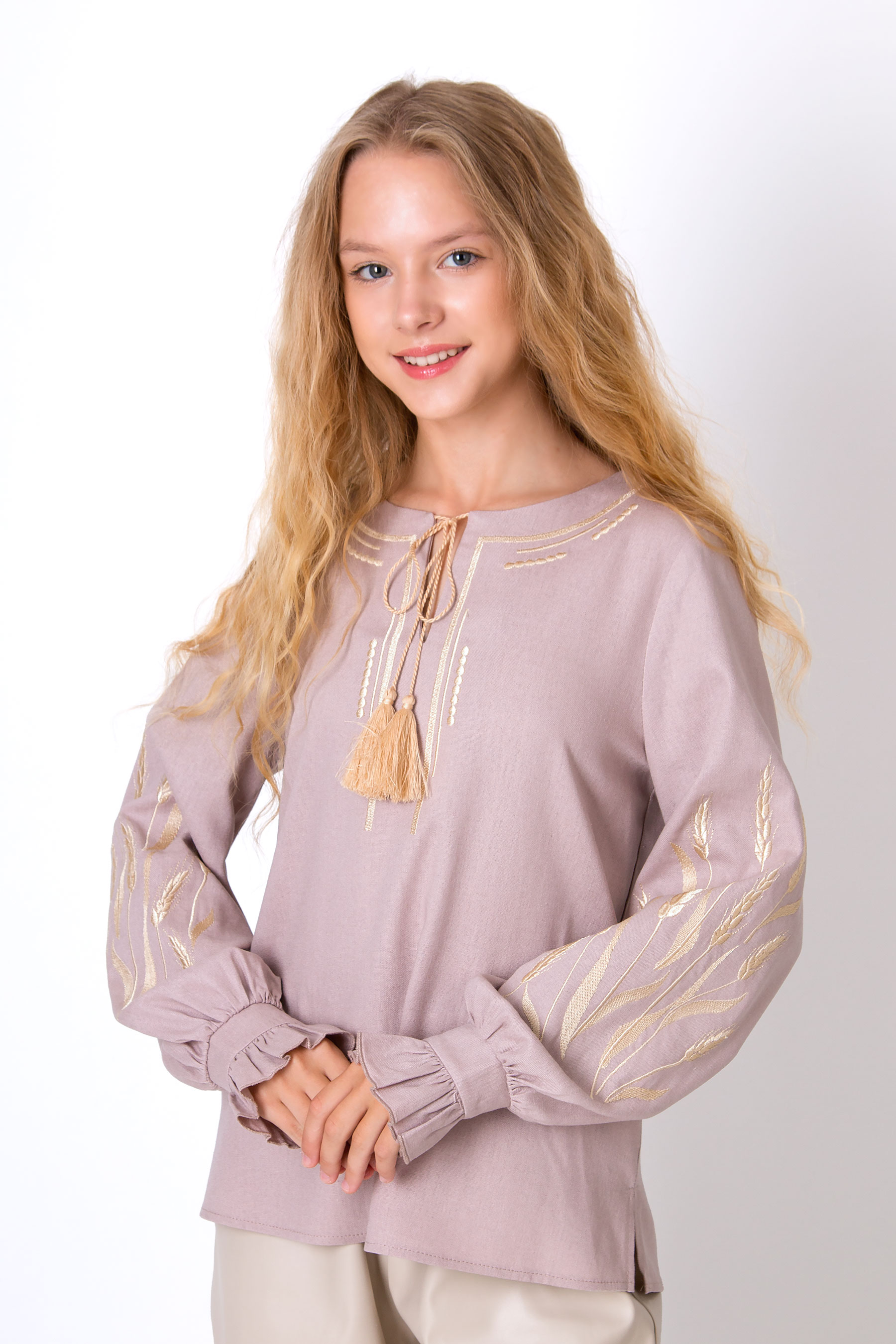 Вишиванка з льону — витончене поєднання традиційних мотивів і сучасного стилю. Рукави прикрашені вишивкою у вигляді колосків — традиційного українського символу достатку, родючості та єдності з природою.