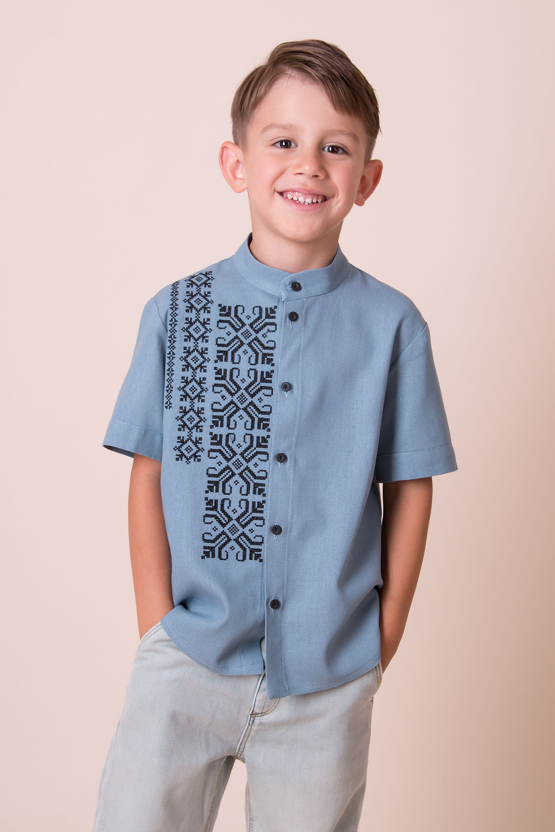 Модель із коротким рукавом і застібкою на гудзики вдало поєднує традиційні елементи з сучасним силуетом. Контрастна вишивка додає характеру, роблячи виріб доречним і для свят, і для щоденних образів.