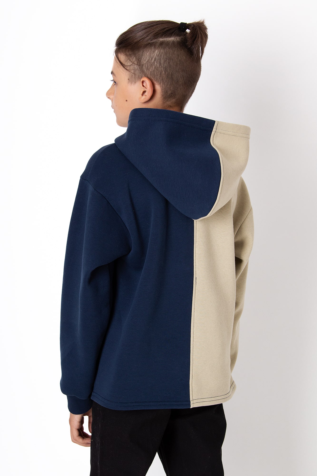 Оригінальне худі з ефектом контрастного поділу створює яскравий образ. Кольорові блоки та великі принти надають виробу динаміки й характеру. Капюшон і зручна посадка роблять модель практичною.