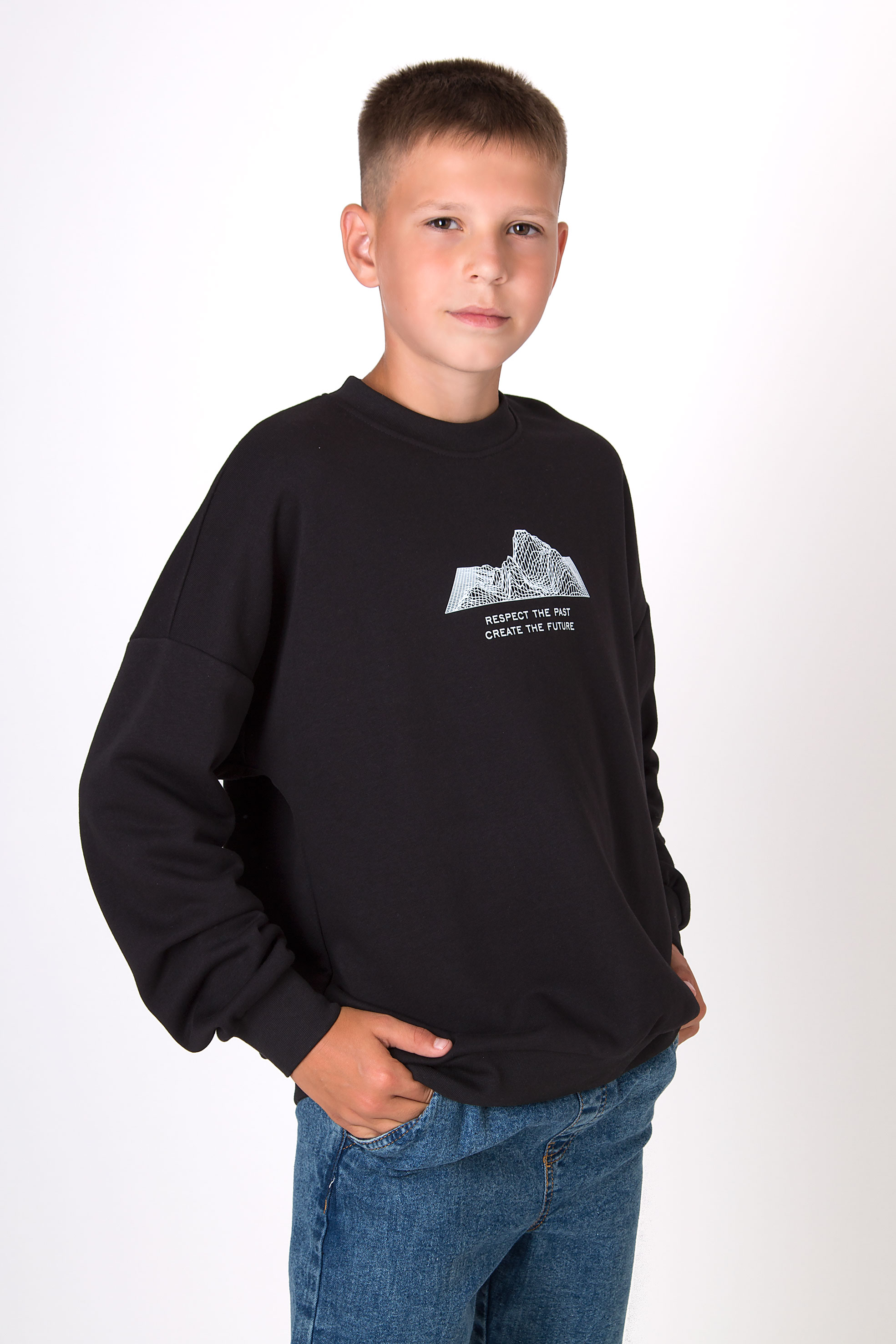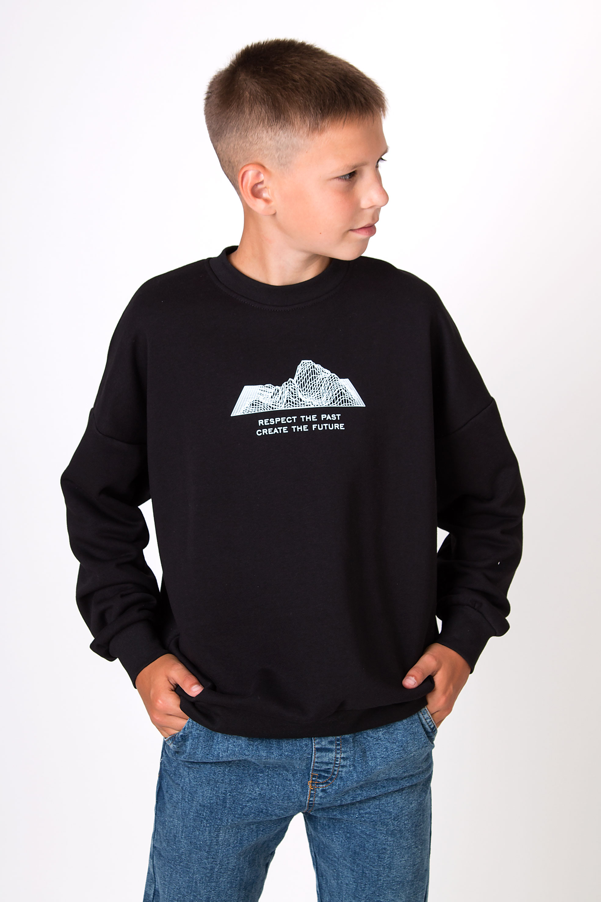 Світшот із м’якого трикотажу зі зручною посадкою та спущеною лінією плеча. Центр прикрашає принт із графічним зображенням гір та надписом. Манжети та низ на резинці — для зручності в повсякденному носінні. Добре поєднується з штанами чи спортивним низом.