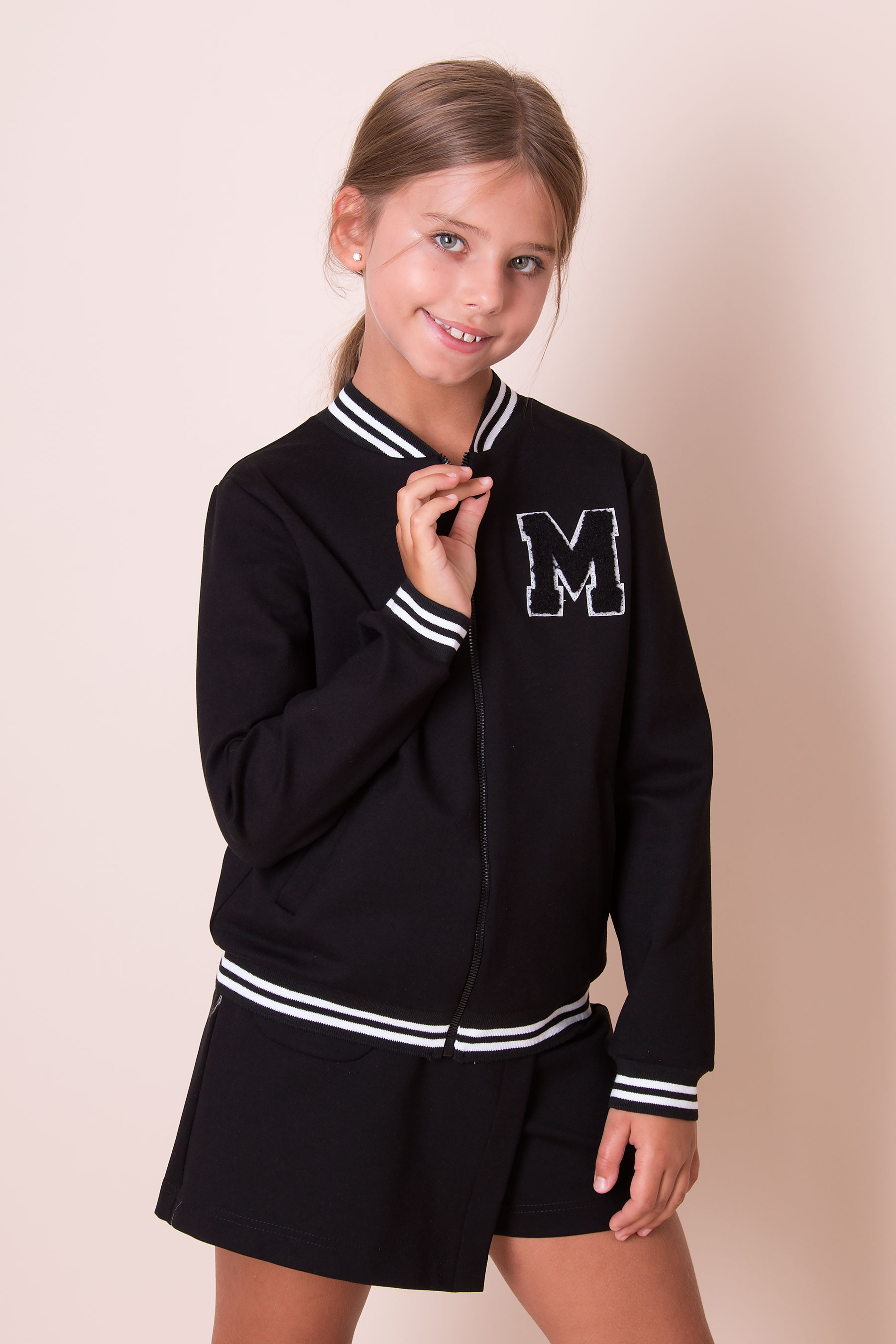 Модель на блискавці з трикотажу алекс. Має зручні кишені, манжети та контрастну нашивку спереду, добре поєднується зі спідницею чи брюками.