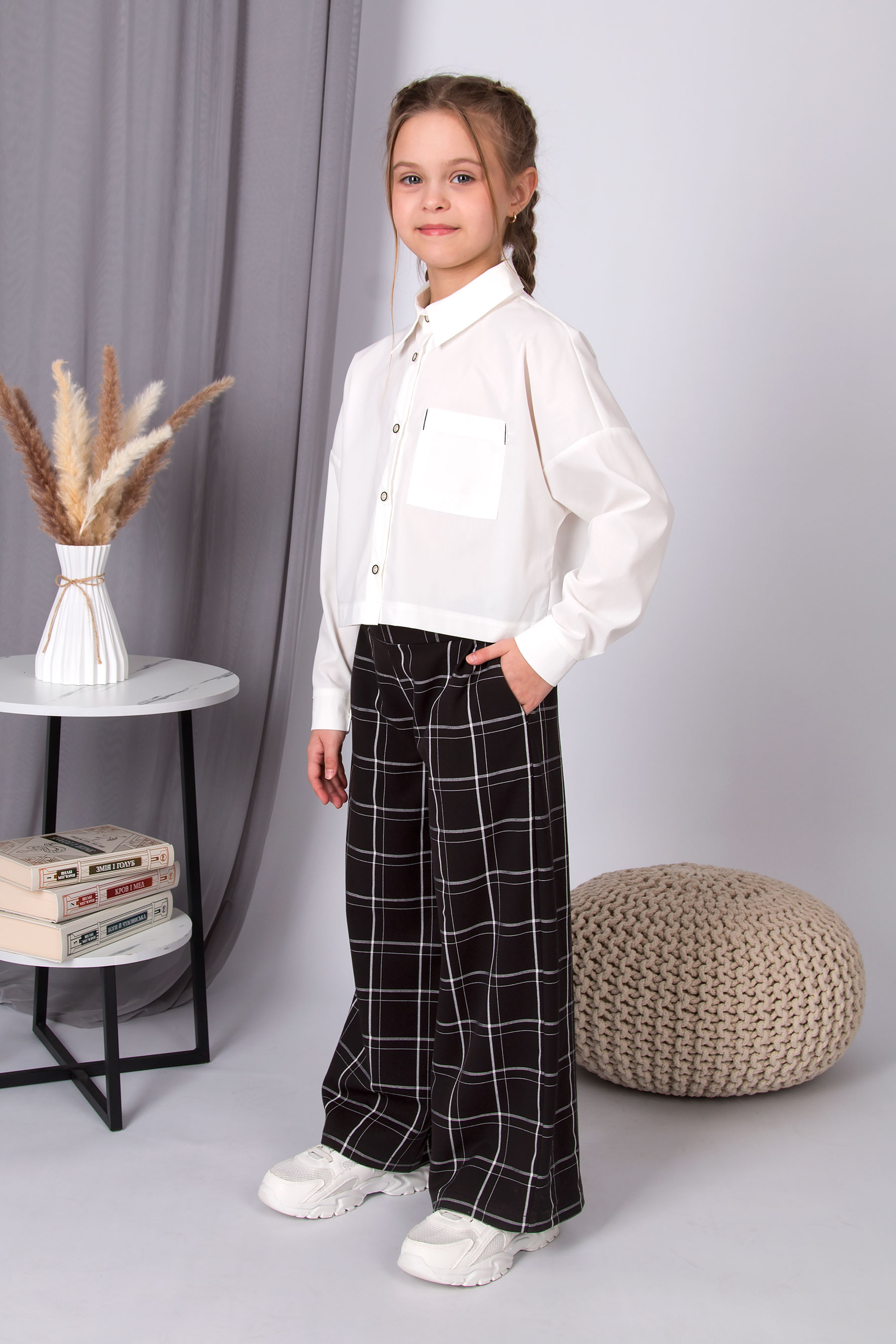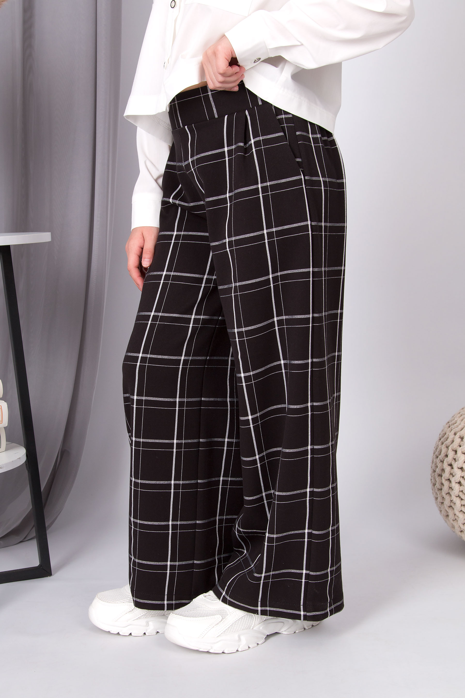 Модні широкі штани в клітинку — ідеальні для стильних образів. Добре поєднуються з жакетом або базовим топом.