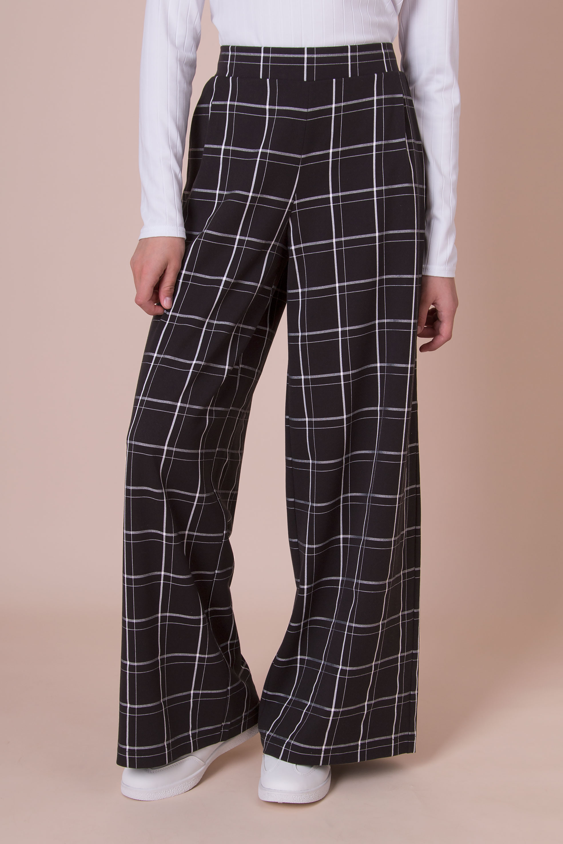 Модні широкі штани в клітинку — ідеальні для стильних образів. Добре поєднуються з жакетом або базовим топом.