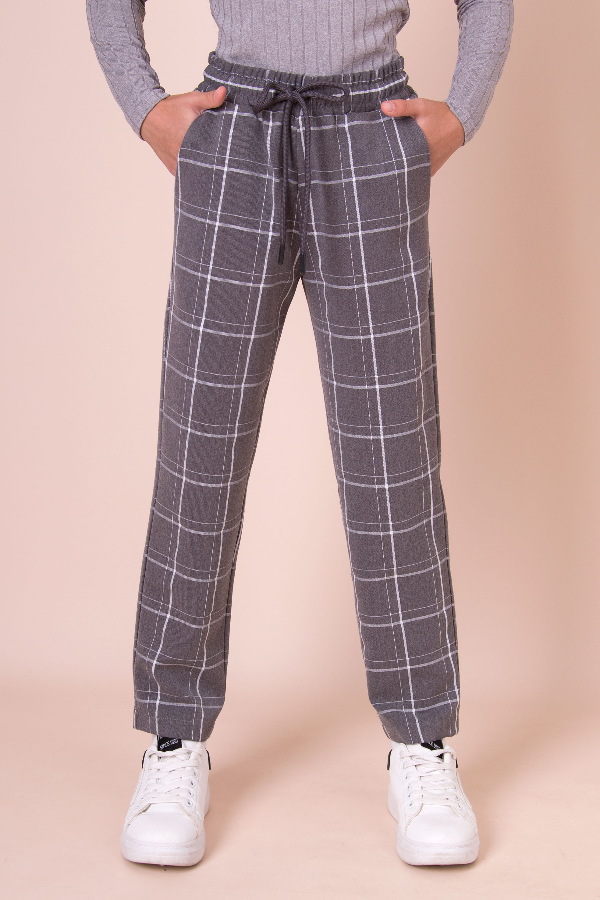 Стильні штани в клітинку з корейської костюмки з еластичним поясом. Виглядають акуратно й стильно.