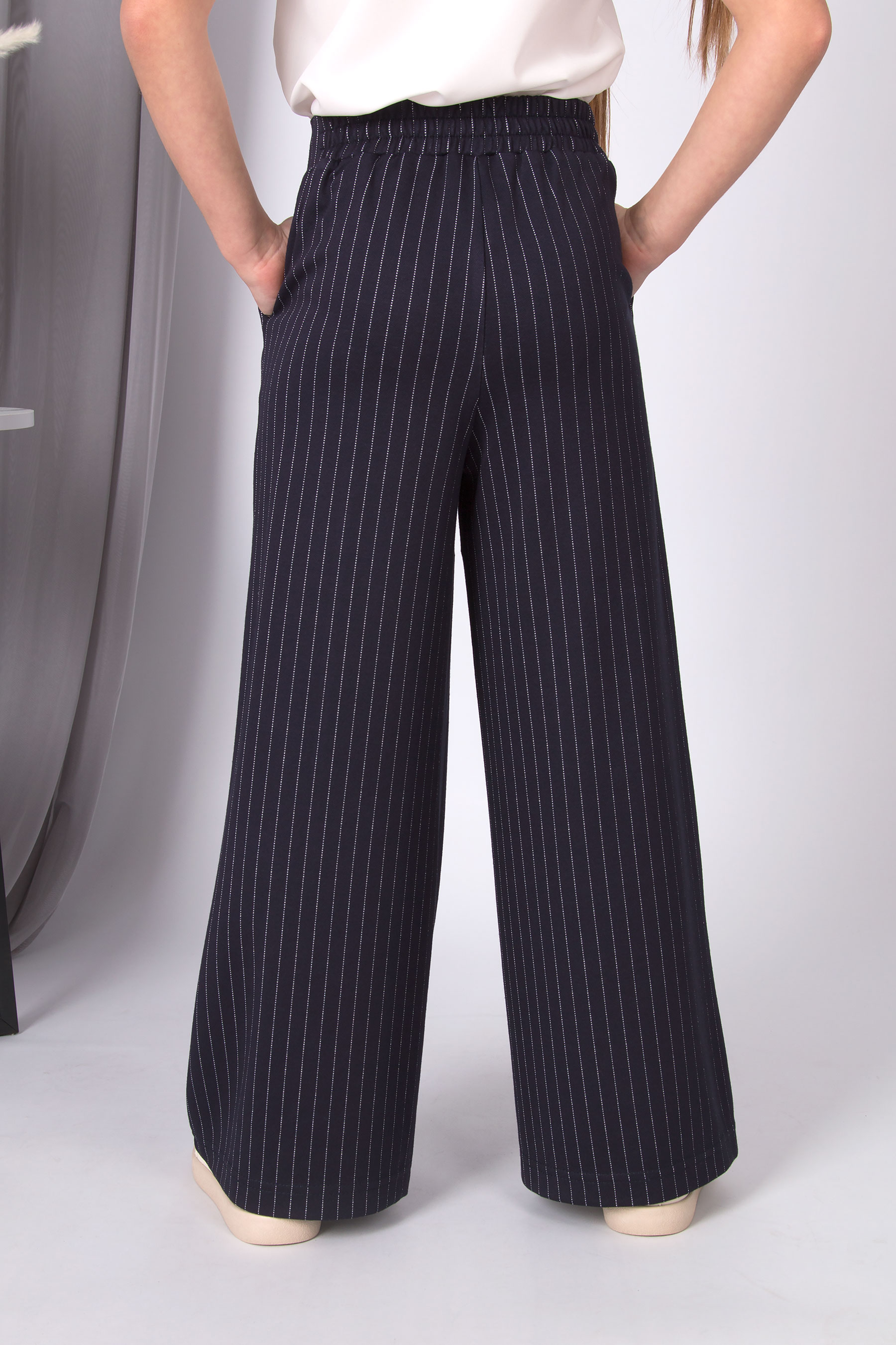 Стильні штани в тонку смужку з трикотажу. Легко поєднуються з базовим одягом на кожен день.