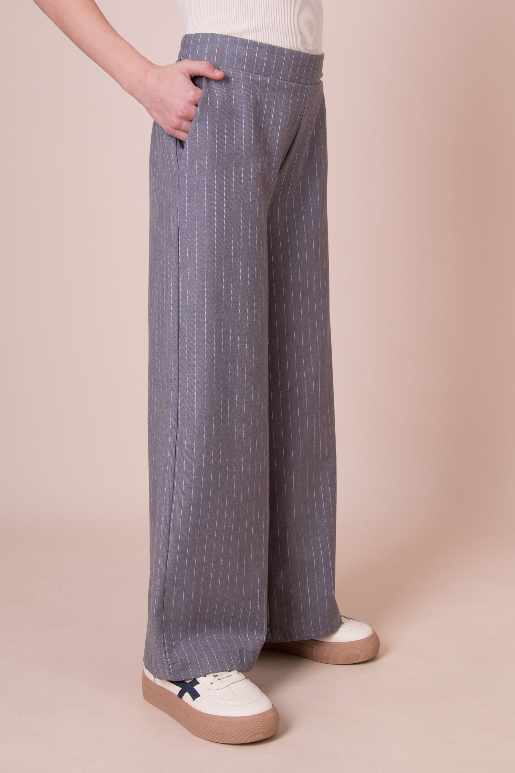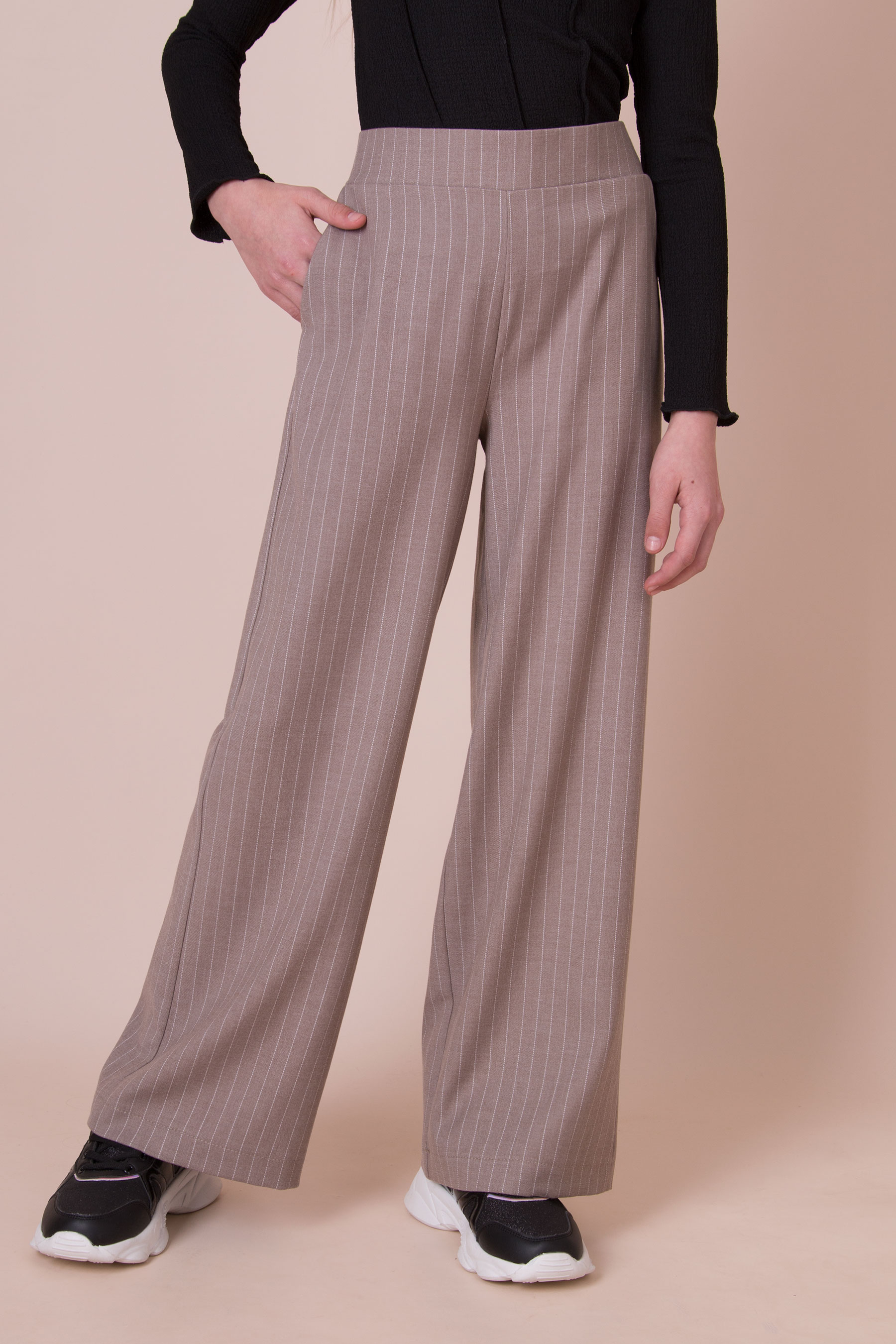 Стильні штани в тонку смужку з трикотажу. Легко поєднуються з базовим одягом на кожен день.